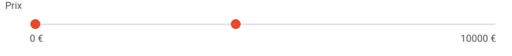 Silider de sélection du prix minimum et maximum - Cliquez sur le bouton « Rechercher »